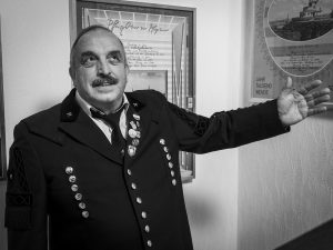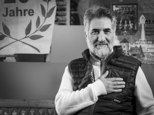 „Der Fiffi, der muss mit bei, der ist überall, wenn einer gebraucht wird!“ Diese Info und eine Telefonnummer waren alles, was ich an Informationen zu Schild 5 hatte, dieser Fiffi war mir bis dahin noch nie wissentlich begegnet, mein Los als Zugezogener. Angerufen, vorgestellt, er wusste zum Glück, dass ich mich melde, sonst sind solche „Kaltanrufe“ nicht so mein Ding. Aber Friedhelm war sofort sehr zugänglich und wir fingen an zu überlegen, was ein geeignetes Motiv für ihn wäre. Ich hatte noch gar keine Idee, oft brauche ich auch erst einmal einen persönlichen Kontakt, damit sich eine Idee aufbaut.