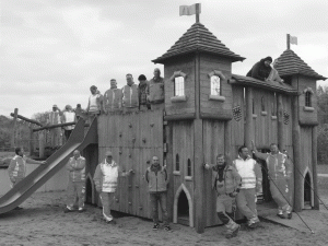 „Du, Christian, welches Schild bauen wir gerade auf, wer wohnt hier?“ Die Löcher sind gebohrt, die Pfähle gestellt und ausgerichtet, das Gerüst ist fertig, die Schilder 1 bis 15 liegen im Transporter, gerade haben wir unsere Ü80- Doppelkopfrunde vor der Hoogen-Villa, schräg gegenüber aufgestellt. „Frau Nepicks wohnt hier.“ Wir gucken uns groß an. Mann, das Pfadfinderschild ist doch noch gar nicht fotografiert! Nun hatte Frau Nepicks ein paar Wochen einen leeren Bilderrahmen im Vorgarten.