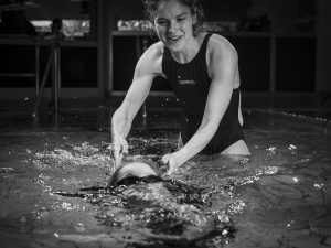Wir haben einige Anläufe gebraucht für das Bild. Im richtigen Moment an der genau richtigen Stelle, bzw. kurz vor(!) dem Sweet Spot musste Rebecca Lotta zu Ihrem „ersten Schwimmzug“ entlassen. Damit es echt aussieht, „beginnt“ die Szene aber schon zwei, drei Schwimmzüge davor. Zum Glück war Lotta zum Zeitpunkt der Aufnahmen bereits eine ausgezeichnete Schwimmerin! 🙂 Dieses Timing mit diesem Gesichtsausdruck hinzubekommen, das war klasse von euch beiden!